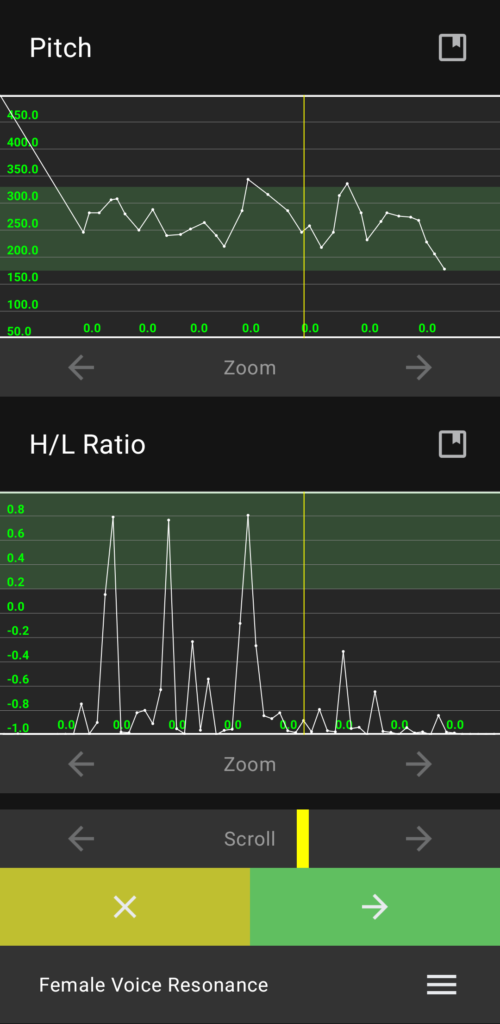 Also, this app can measure a RESONANCE. (Resonance is not a Pitch). Resonance is how your voice vibrates, and achieving the right resonance is very important for feminization. If you have a high pitch, but your voice sounds SUS and you don't know why ⇾ that's probably a wrong resonance. So this app can help you to upgrade your voice from SUS to YAY